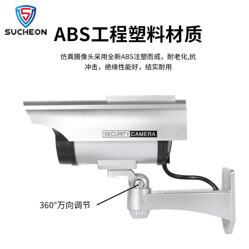 太阳能仿真摄像机假监控探头模型带闪烁灯逼真免换电池室外防雨水