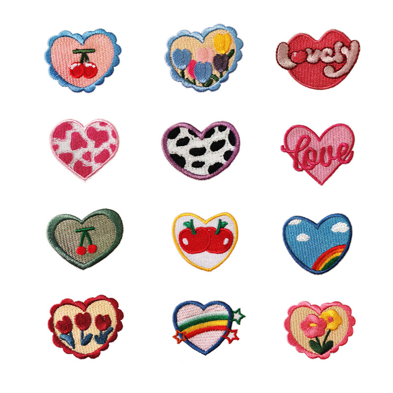超漂亮自粘爱心布贴补丁贴衣服裤 饰修补破洞刺绣贴布 子牛仔羽绒装