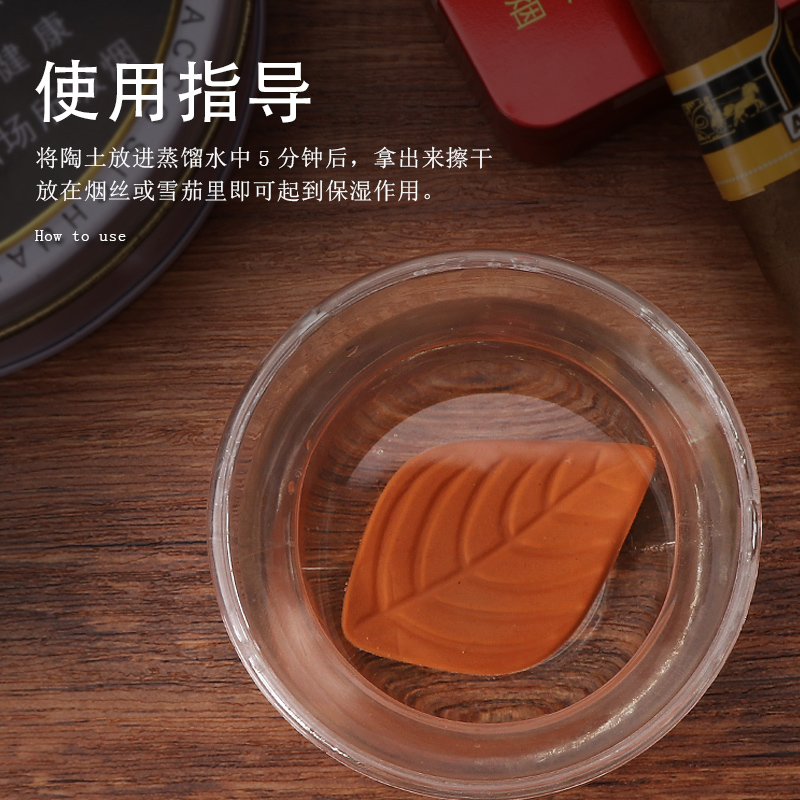 叶子型陶土保湿 片手卷烟丝雪茄口粮加湿片烟斗烟具恒湿增湿配件