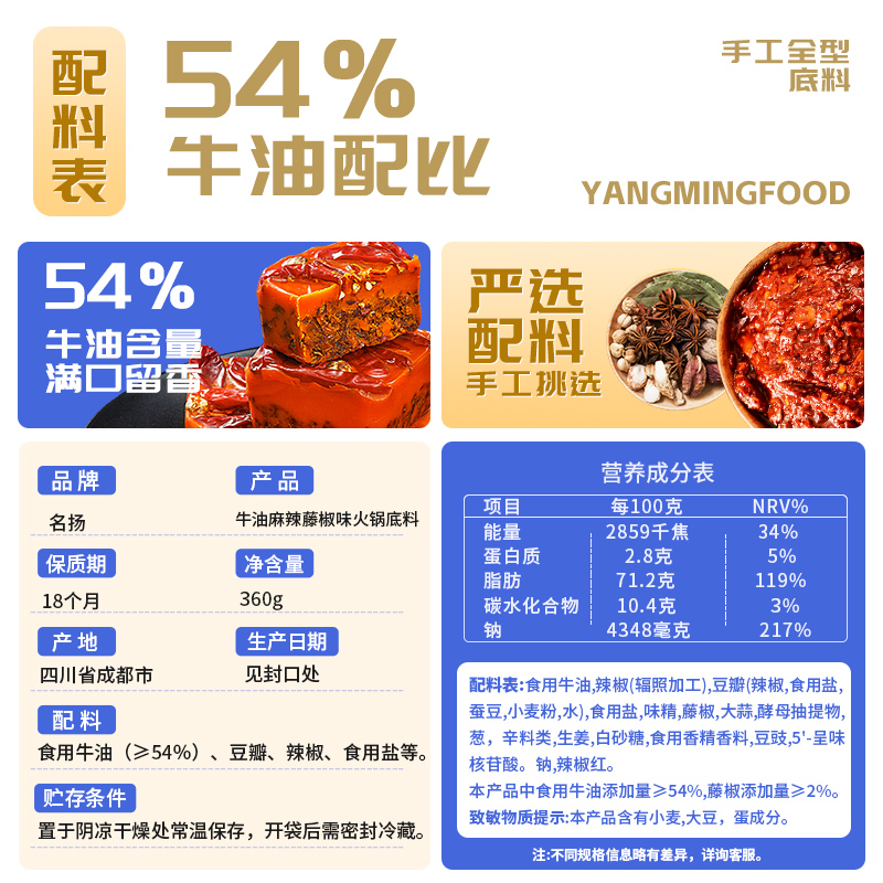 名扬火锅底料牛油麻辣藤椒360g 2火锅麻辣烫底料调味料