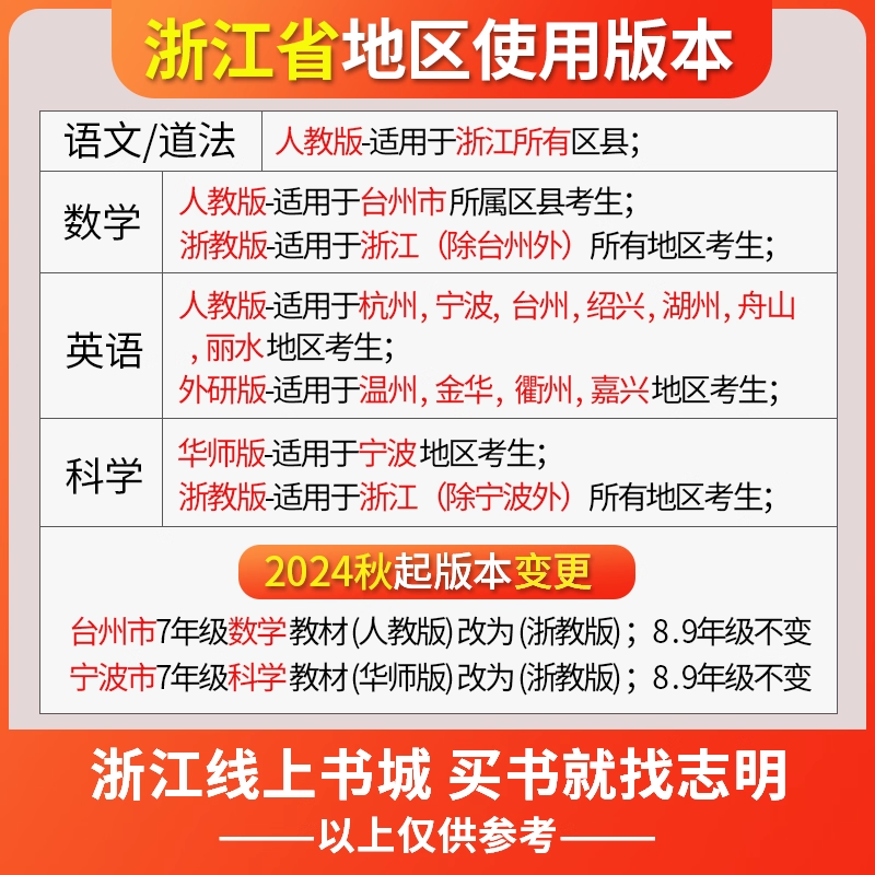 历史地理生物道德与法治人教版 语文英语外研版 教材同步中学教辅资料 初中必刷题七八九年级上册下册数学科学浙教版 浙江专用2026新版