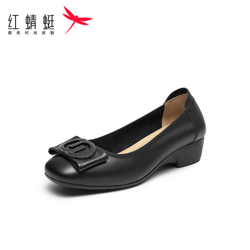 子舒适不累脚妈妈鞋 红蜻蜓单鞋 真皮中老年鞋 粗高跟女鞋 女软底皮鞋