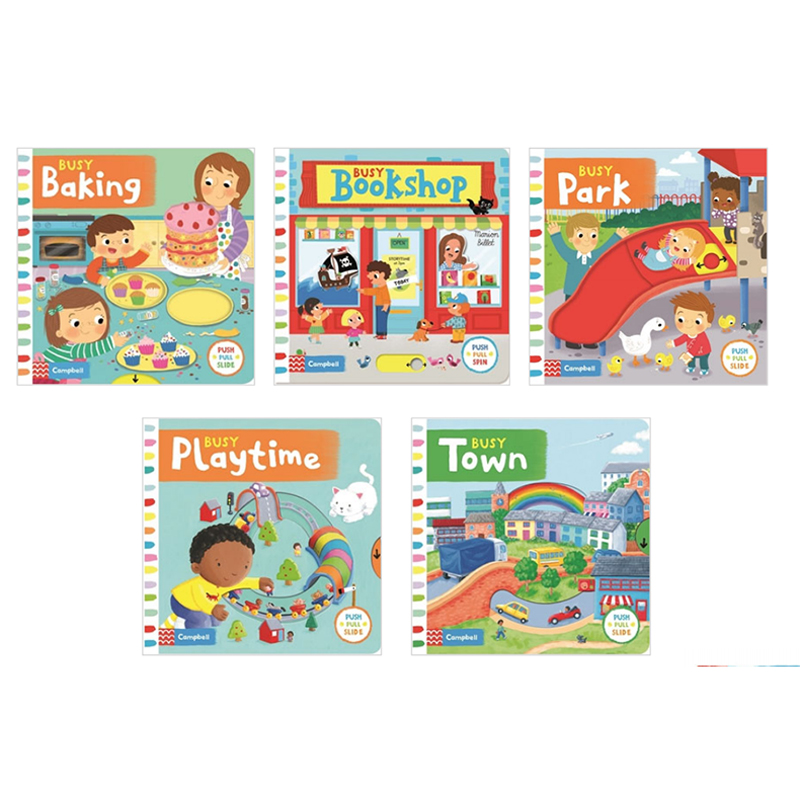LET PLAY Busy系列我们一起玩吧5册套装 儿童推拉滑卡舌益智机关游戏图画故事儿童绘本书籍 英文原版 音频 BUSY