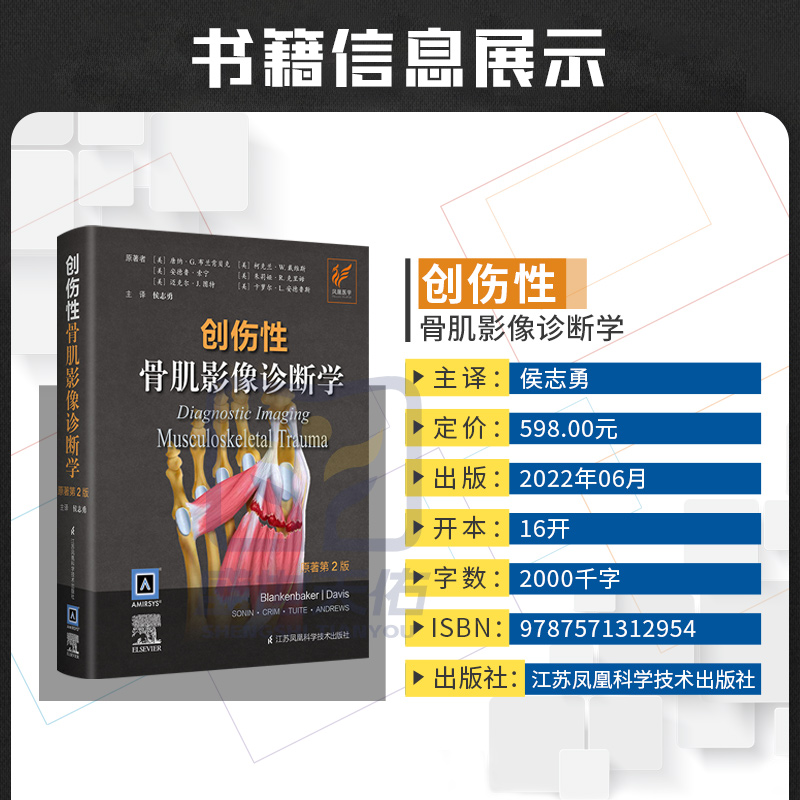 X线CT超声MRI肌骨临床成像技术骨盆髋关节骨折治疗病例图像图谱实用骨科学书籍骨骼肌肉 侯志勇 创伤性骨肌影像诊断学 原著第2二版
