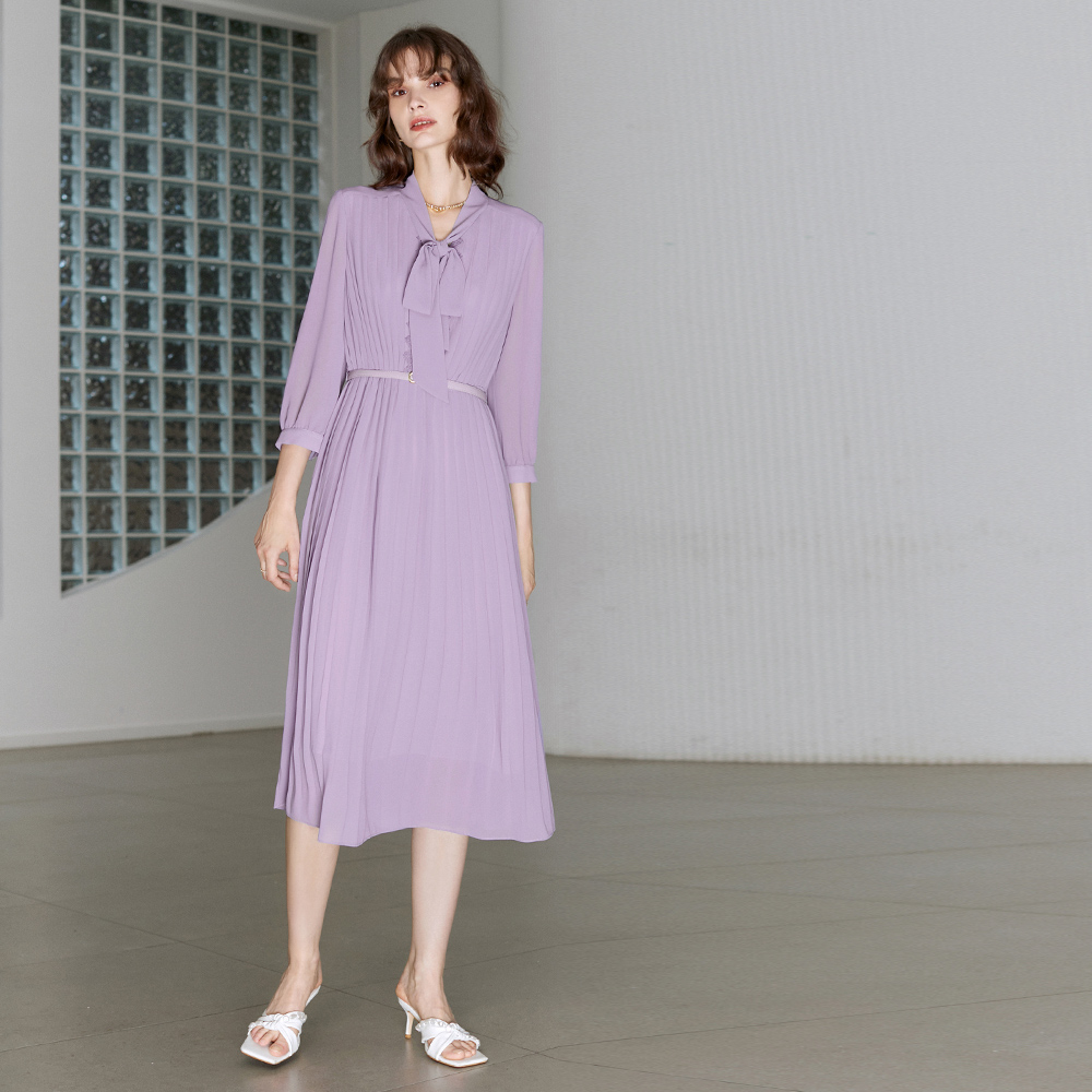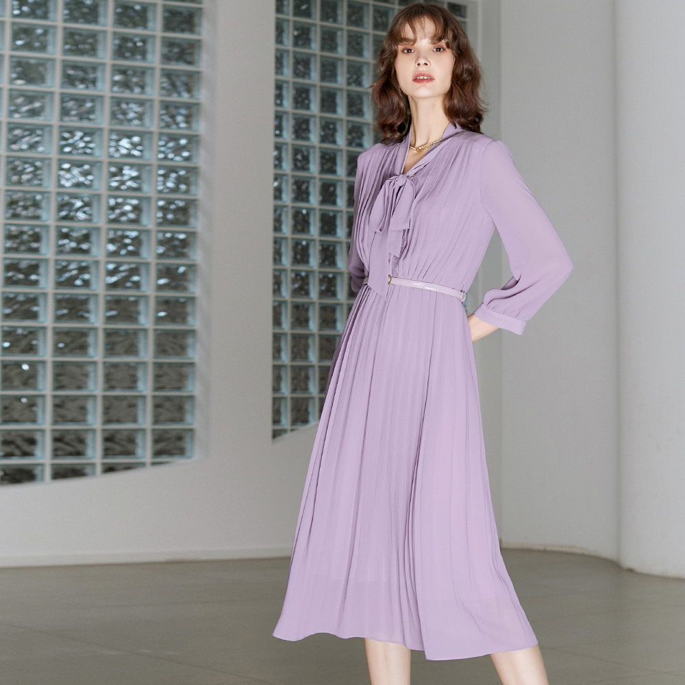 歌莉娅丝绒连衣裙女秋季 裙子 穿搭高级感重要场合大方得体端庄长袖