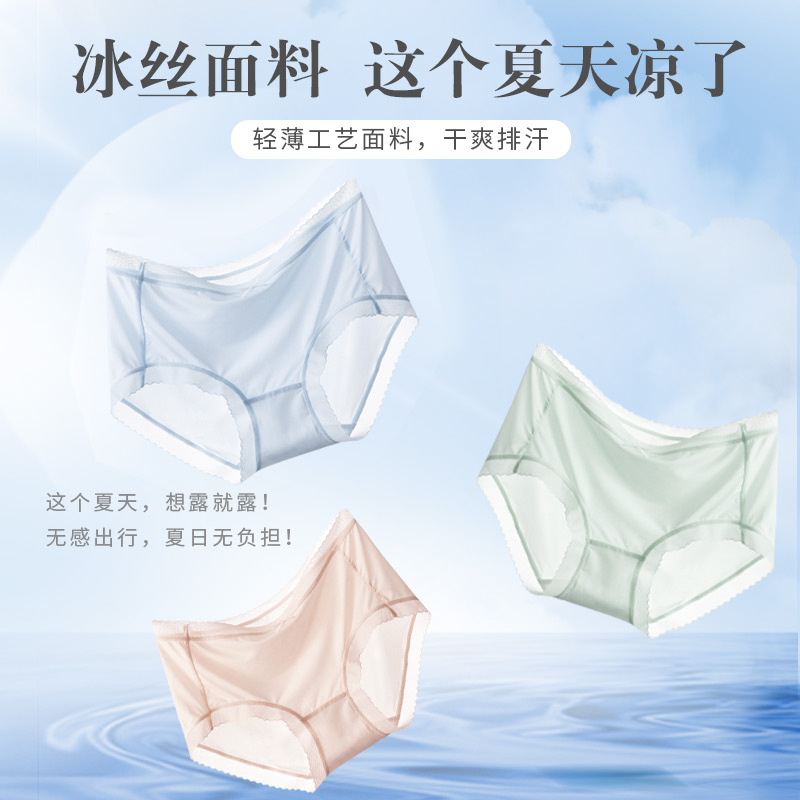 透气女士三角裤 女生超薄无痕面膜裤 清爽冰丝内裤 婷美4条装