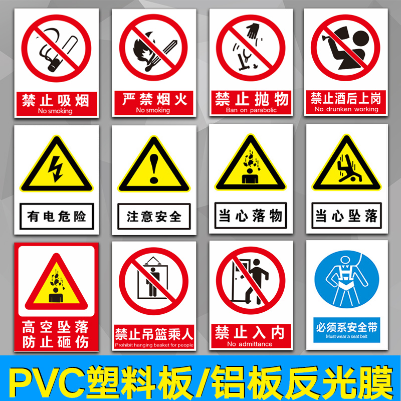 工地安全标识牌全套施工警示牌户外工程工地建筑警示牌必须戴安全帽注意安全警告标志标牌当心落物标语定制做