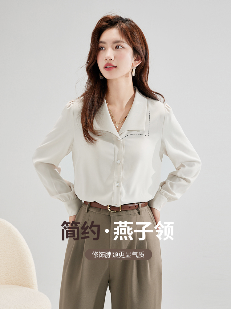 浪漫通勤衬衫 秋水伊人法式 新款 2025年秋装 圆领系带上衣 纯色雪纺衫