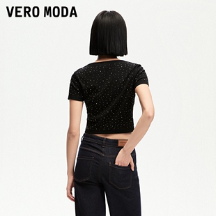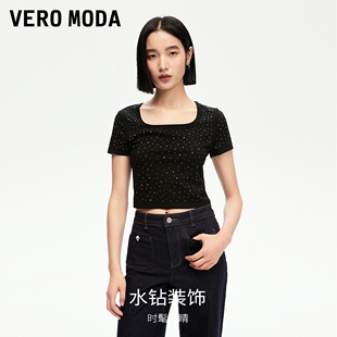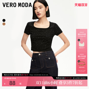 短款 Vero 修身 新款 U领满钻辣妹风短上衣324301026 ModaT恤女24秋季
