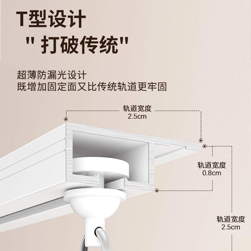 侧装 单轨双轨V窗帘盒 窗帘轨道免打孔超薄滑轨隐形静音导轨顶装