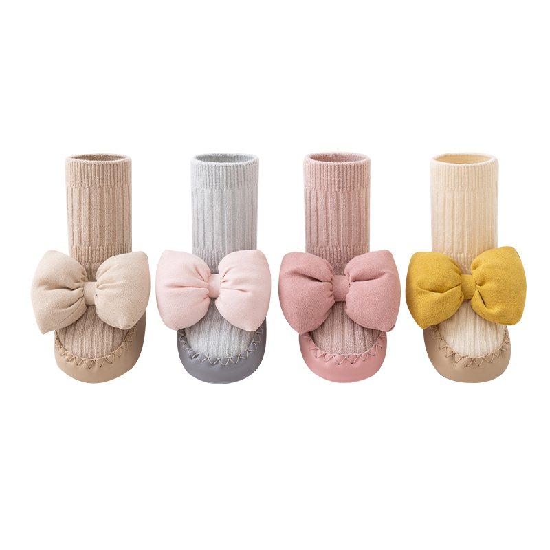 宝宝蝴蝶结中筒软底防滑鞋 25婴儿鞋 学步鞋 步前鞋 子 袜新生儿地板鞋