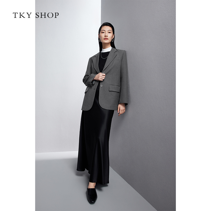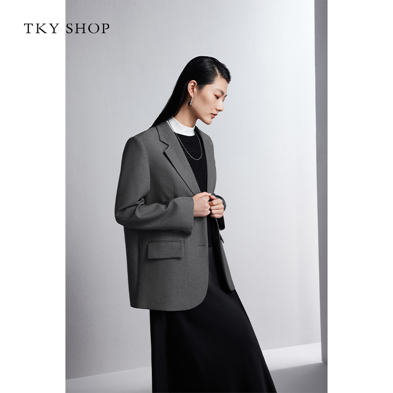 长袖 TKY 新款 外套女2025秋季 西服小个子上衣灰色便西 SHOP休闲西装