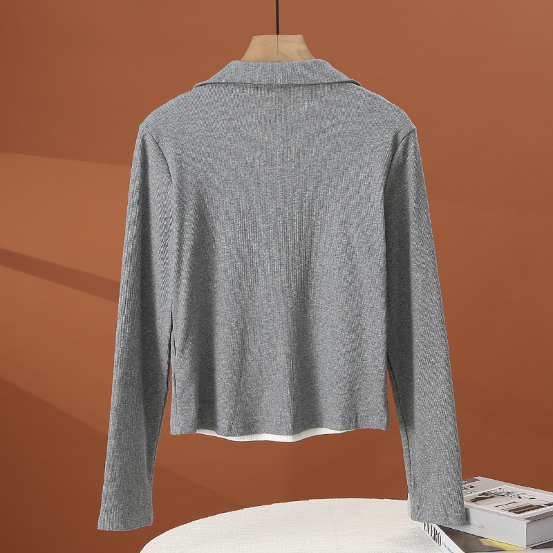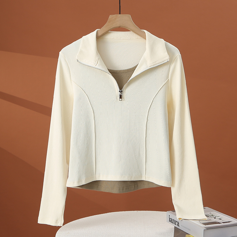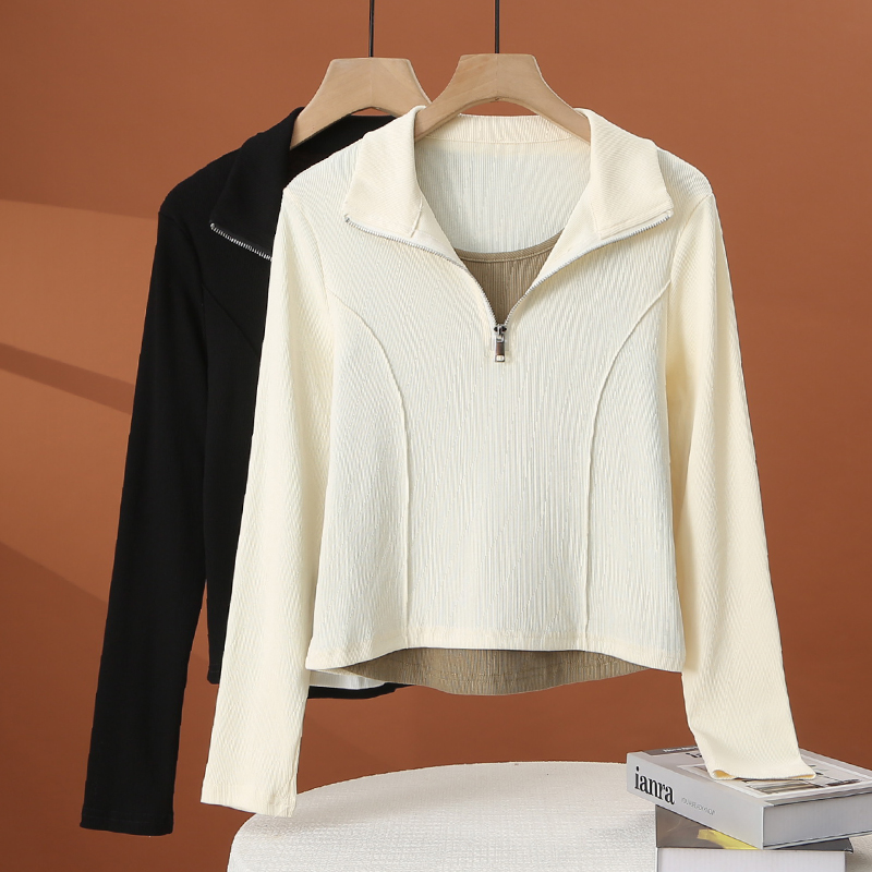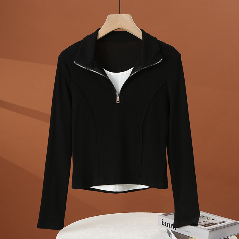 秋装 t恤女2025年新款 时尚 洋气修身 半拉链上衣 秋季 短款 假两件长袖