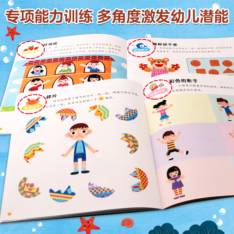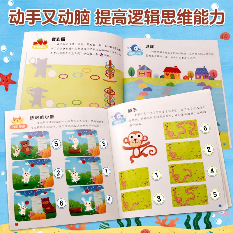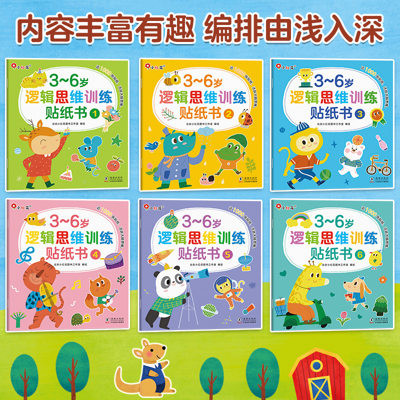 6岁逻辑思维训练贴纸书 邦臣小红花3 贴画粘贴画书宝宝玩具书启蒙早教儿童识字贴智力开发专注力创造力培养找不同训练 新华文轩