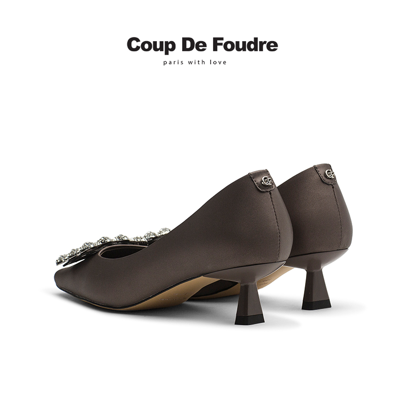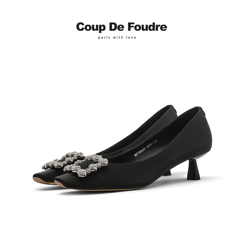 浅口细跟通勤单鞋 CDF女鞋 百搭真皮水钻方扣气质单鞋 法式 轻奢秋季
