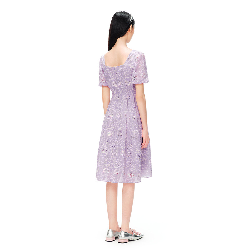 薰衣草紫连衣裙2024夏 SALT.P可颜莱赛尔镂空绣花泡泡袖 天丝