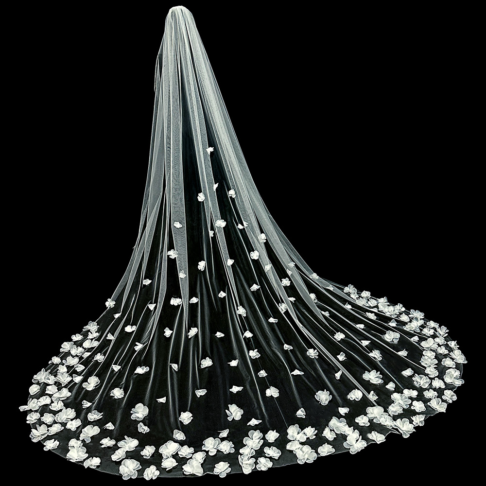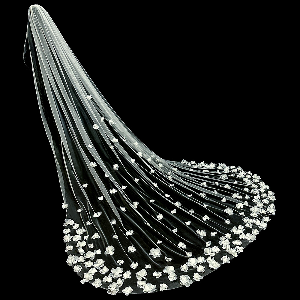新娘结婚主婚纱头纱超仙森系水晶纱立体花朵头纱长款 拖尾拍照头纱