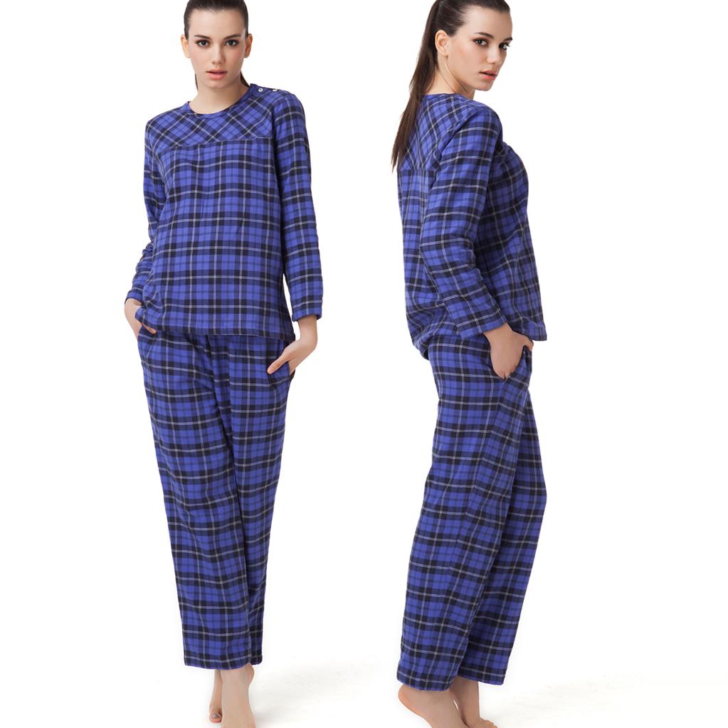 睡衣女春秋季 可外穿大码 柔软棉长袖 套装 家居服 格子长裤 迪士尼新款