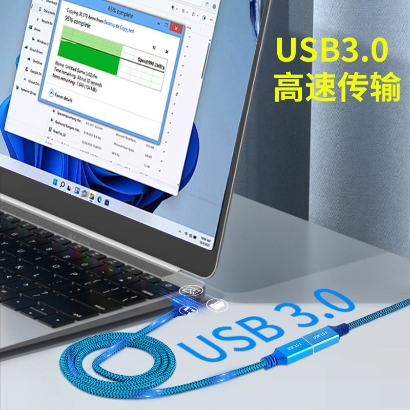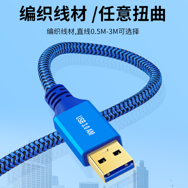 单弯头usb3.0高速数据线A公对A公连接笔记本电脑散热器支架底座移动硬盘写字板机顶盒刷机左右弯供电加长3米