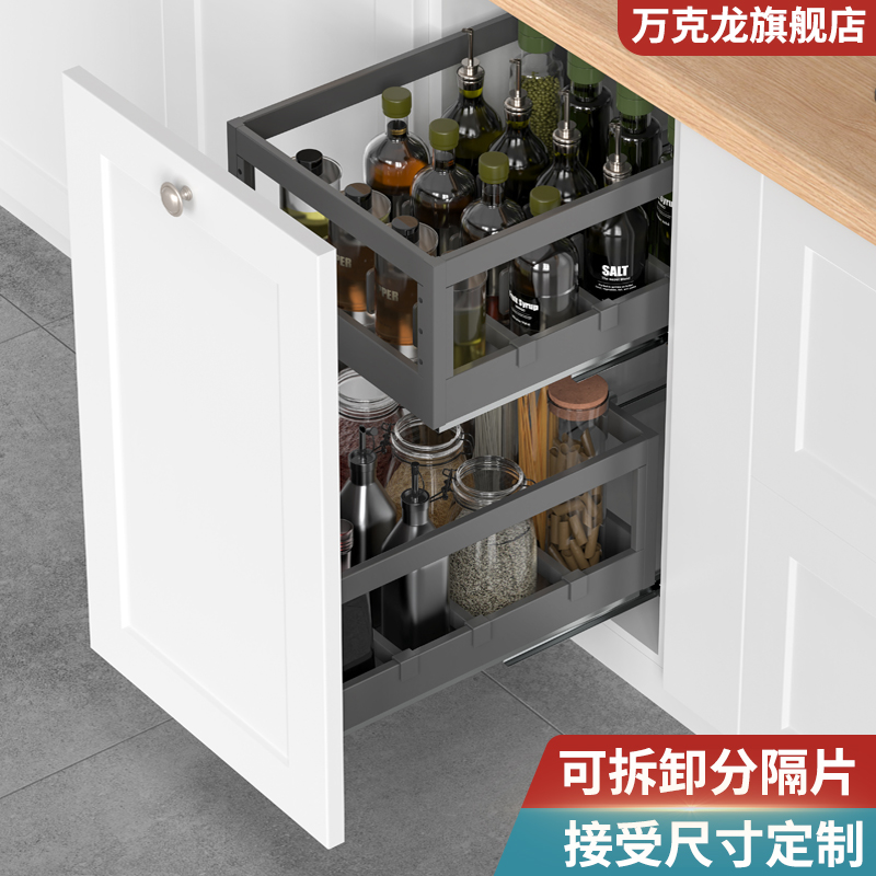 浅拉篮深度400内橱柜304不锈钢调味篮多层开门抽屉式 阻尼轨道定制