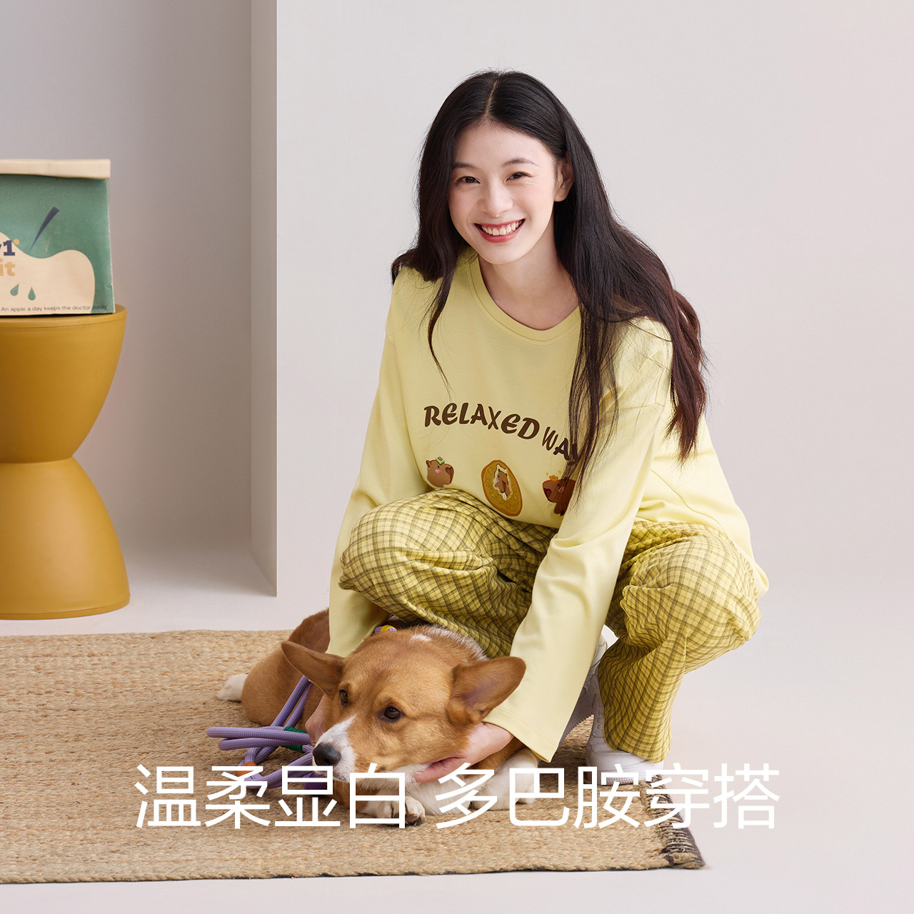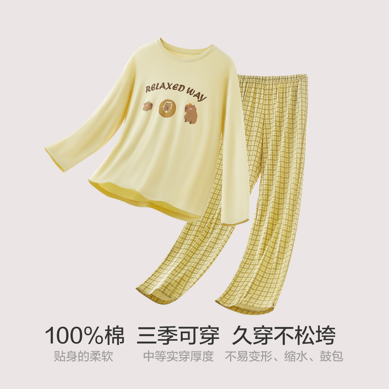 睡衣卡皮巴拉纯棉女春柔软家居服可外穿薄款 红豆居家套头长袖 长裤