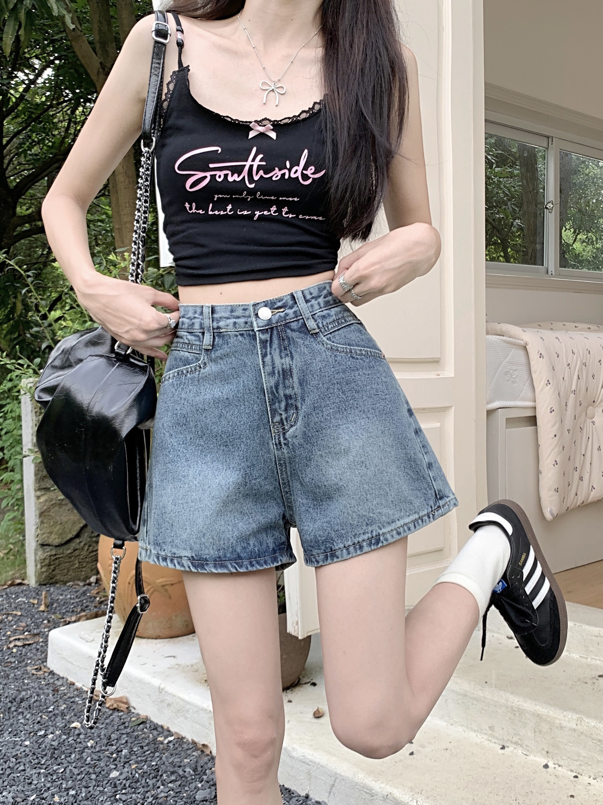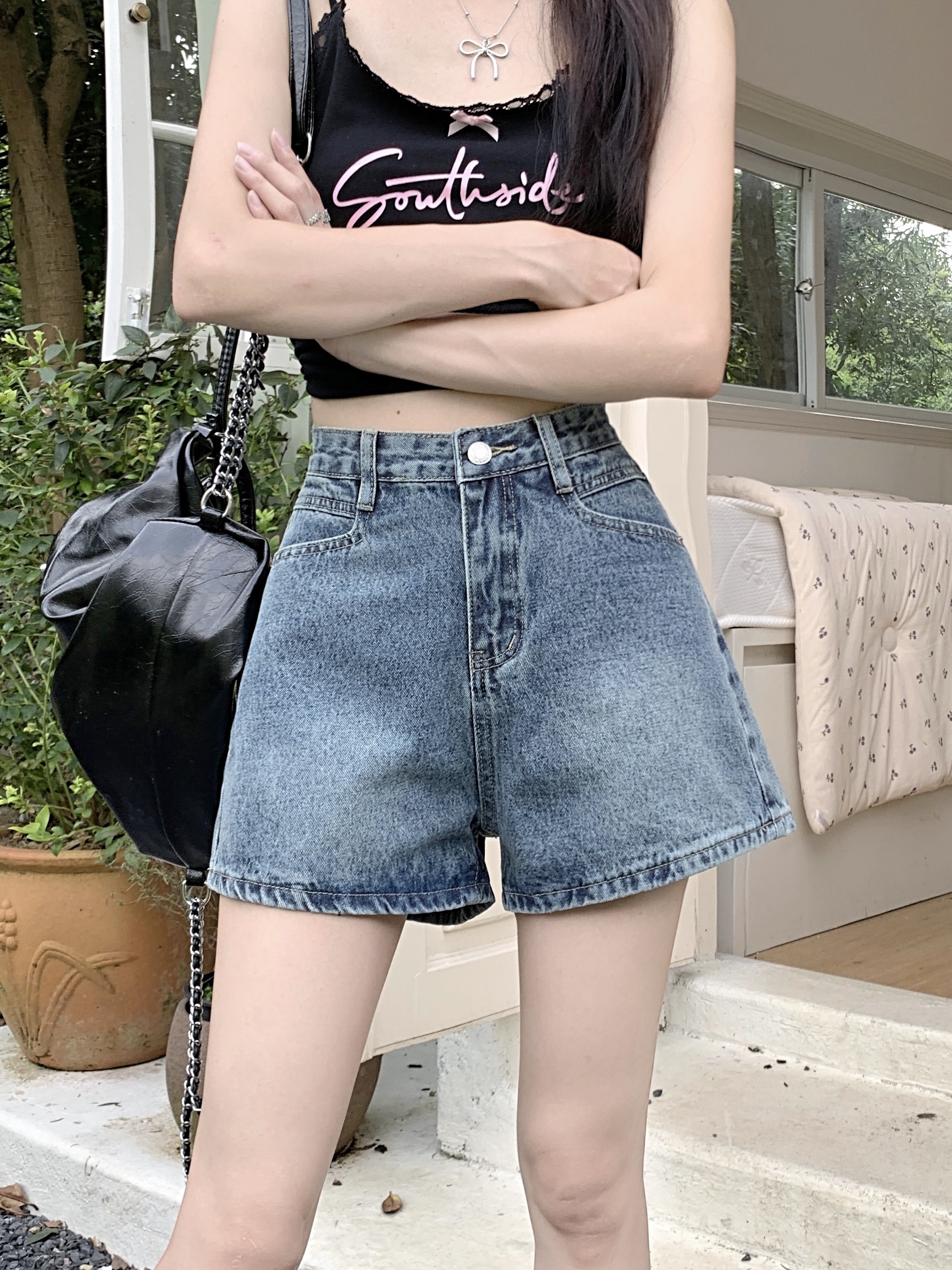 胖mm高腰小个子显瘦a字热裤 复古阔腿牛仔短裤 宽松大码 新款 女夏季