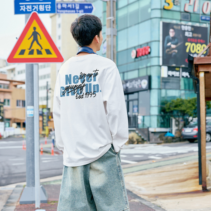 唐狮2025春夏新款 T恤男后背字母休闲百搭潮酷白色字母后背G 长袖