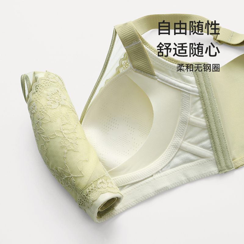 芬腾女士内衣大胸显小上托防下垂文胸蕾丝聚拢薄款 胸罩 无钢圈大码