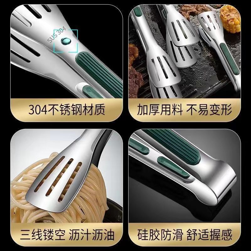 304不锈钢食品夹子家用面包厨房夹防烫菜烤肉烧烤牛食物夹