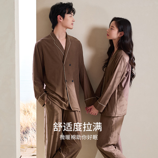 新中式 纯棉长袖 休闲大码 男士 轩靓情侣睡衣女春秋季 家居服套装 秋款