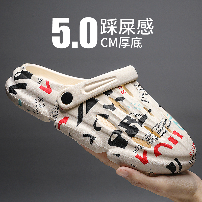 外穿厚底2025新款 沙滩鞋 凉鞋 洞洞鞋 男士 夏季 防臭防滑包头拖鞋 男款