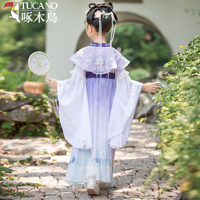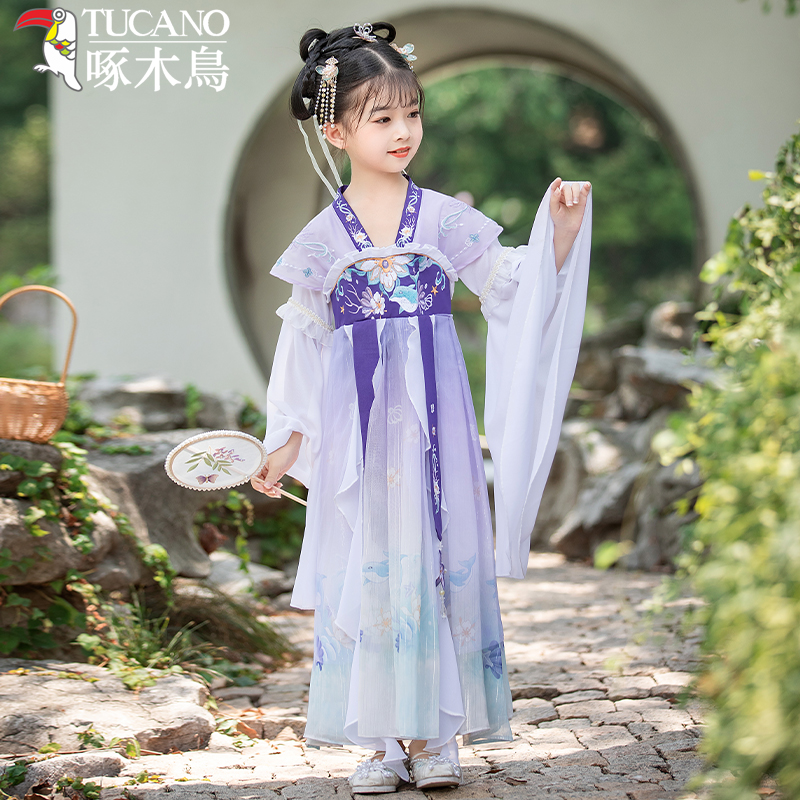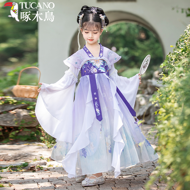 小朋友古风裙 童装 汉服女童春夏儿童古装 连衣裙小女孩襦裙仙气长袖