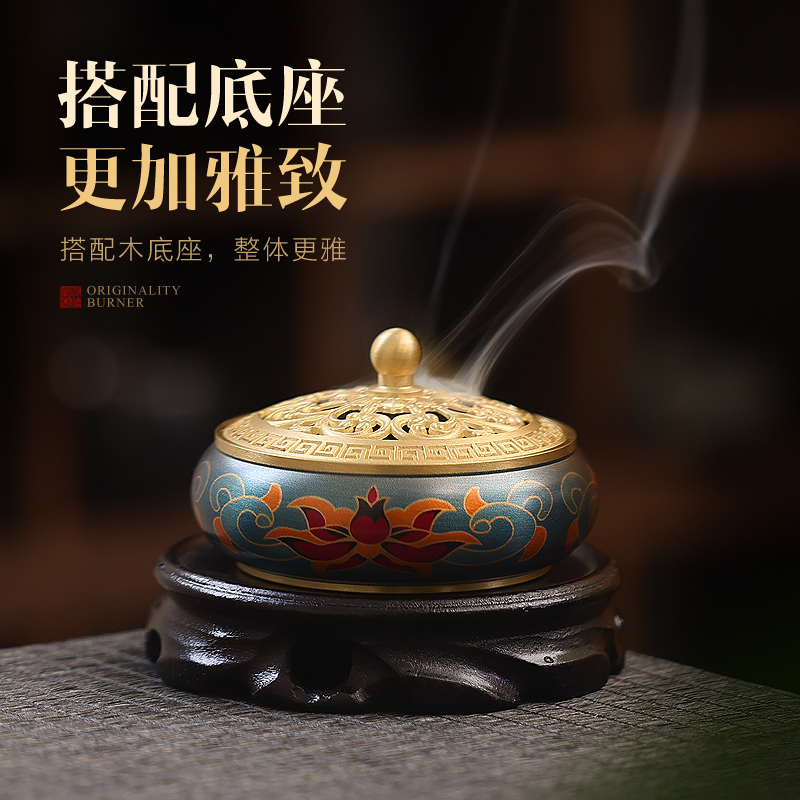 莲花铜香炉家用盘香室内上香檀香沉香薰炉珐琅彩茶道客厅香薰炉