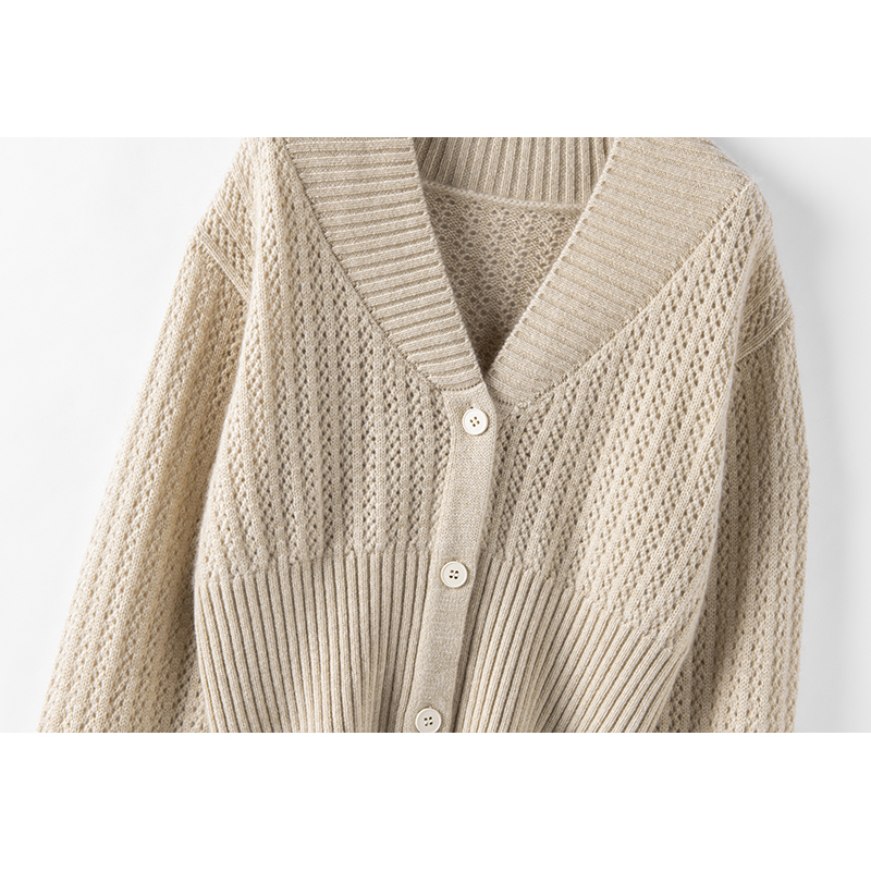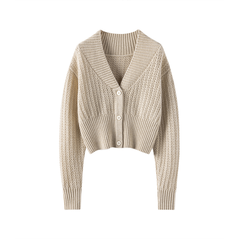 摩安珂 绵羊毛山羊绒高智感扭绳绞花肌理短款 MOCO针织衫 开衫