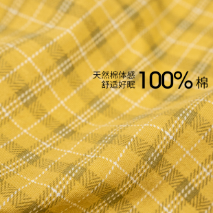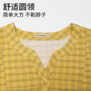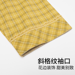 家居服套装 秋鹿柔软透气纯棉睡衣女夏季 九分裤 格纹印花七分袖 薄款