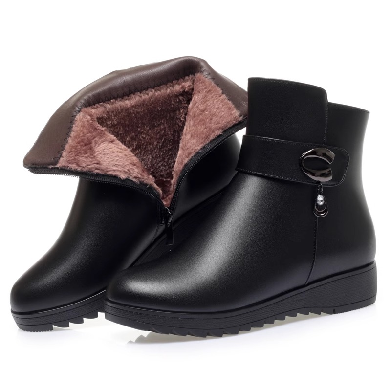 加绒保暖羊毛鞋 短靴软底中老年冬季 女春秋2025新款 真皮妈妈棉鞋