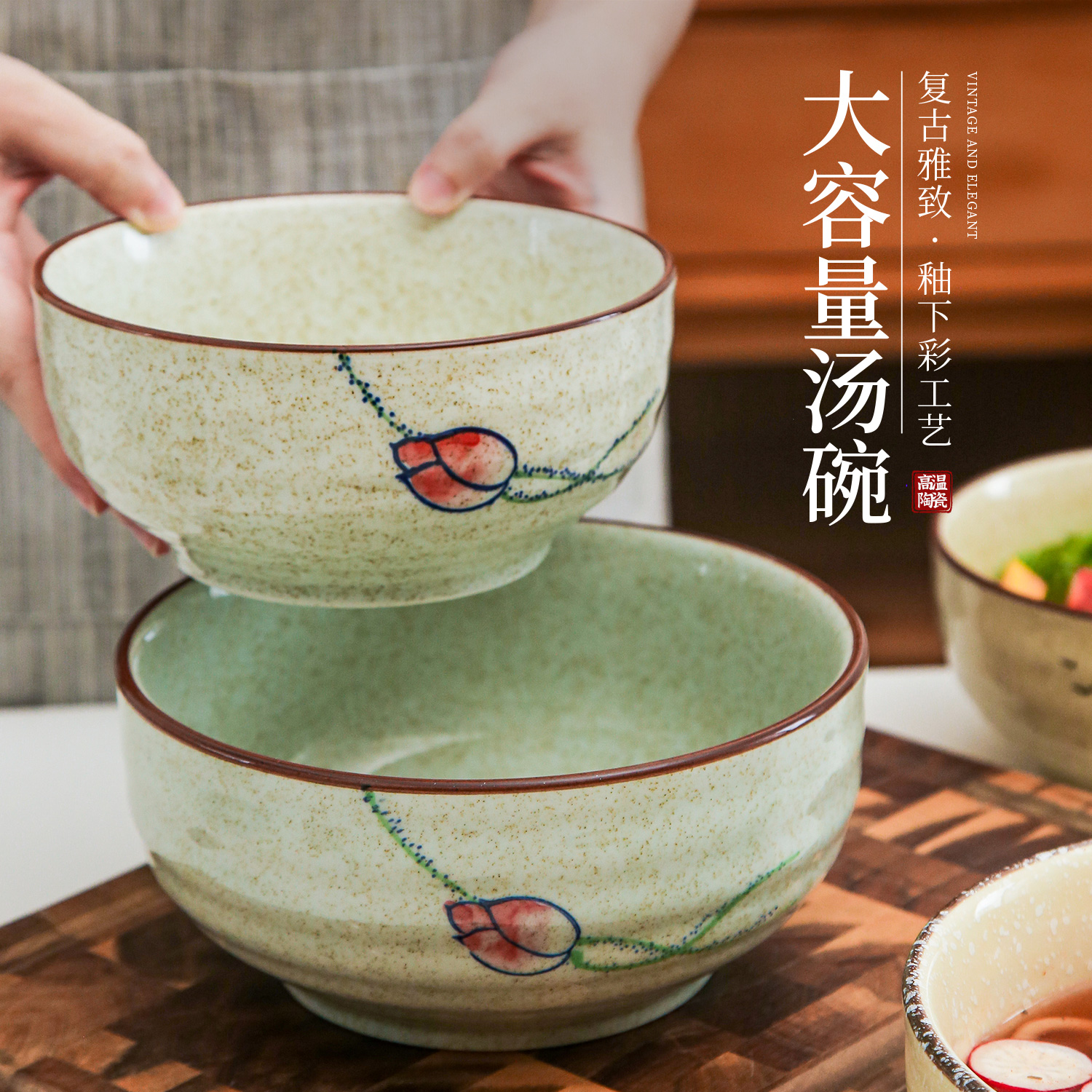 舍里中式 陶瓷面碗家用釉下彩大容量拉面碗汤碗复古斗笠碗螺蛳粉碗