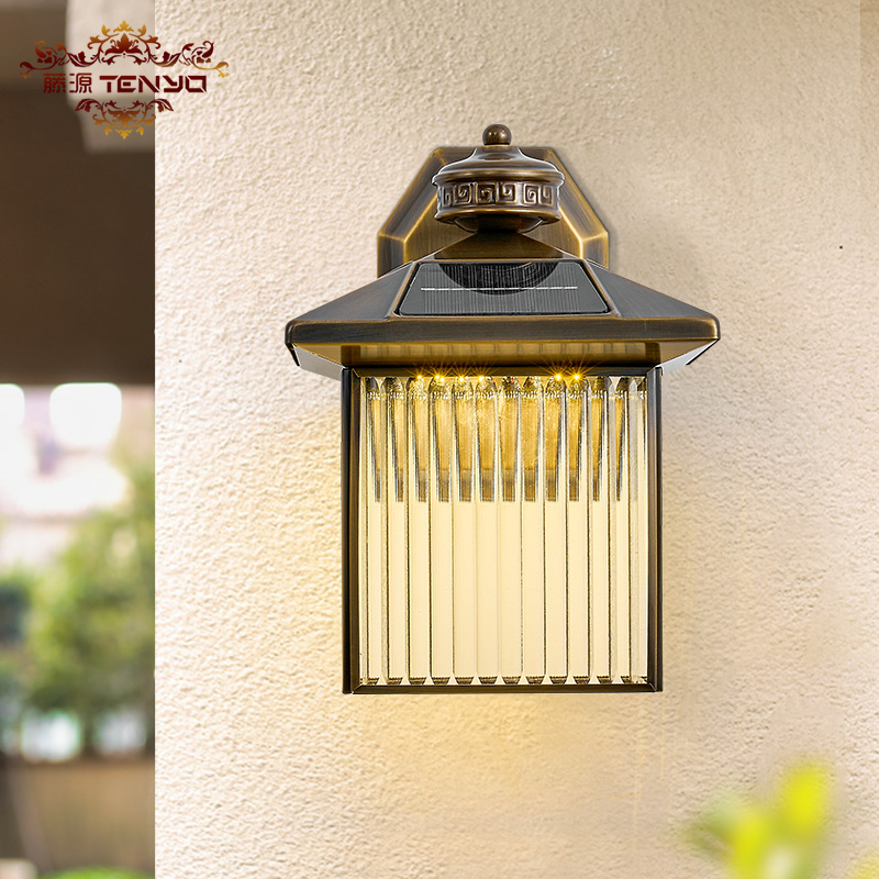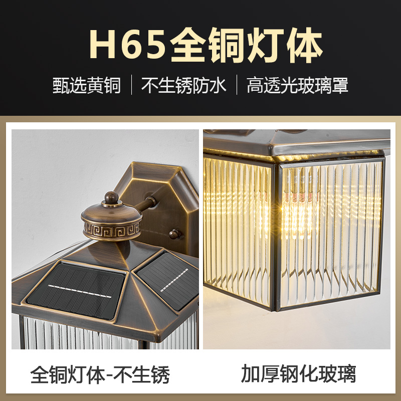 全铜户外壁灯太阳能庭院灯防水室外花园别墅露台大门围墙外墙壁灯