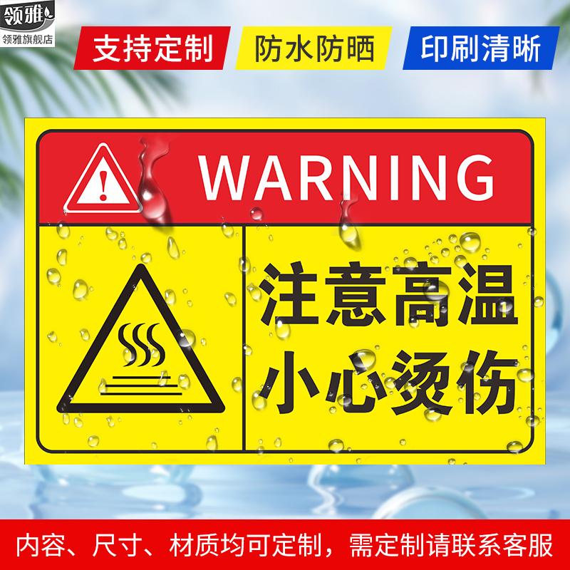 当心高温警示牌指示牌提示牌注意高温当心烫伤标识贴贴纸当心伤手标识高温作业工厂车间安全告示标牌标志定制