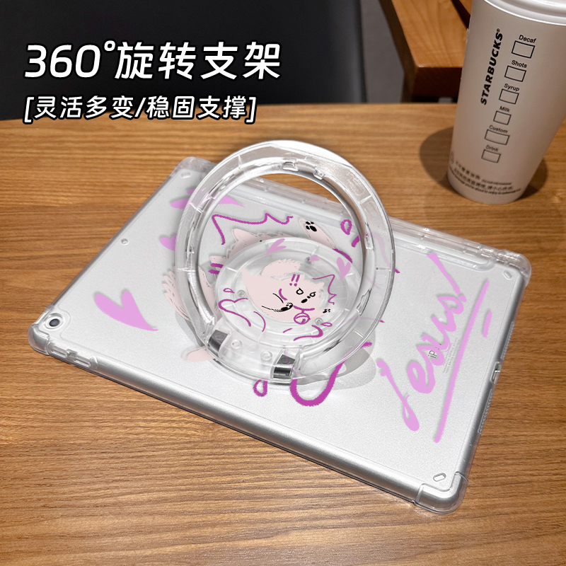 适用于ipad9保护套兔子生气12.9寸平板壳2022新款 air5带支架360°可旋转iPad10透明mini6防摔2021女pad亚克力