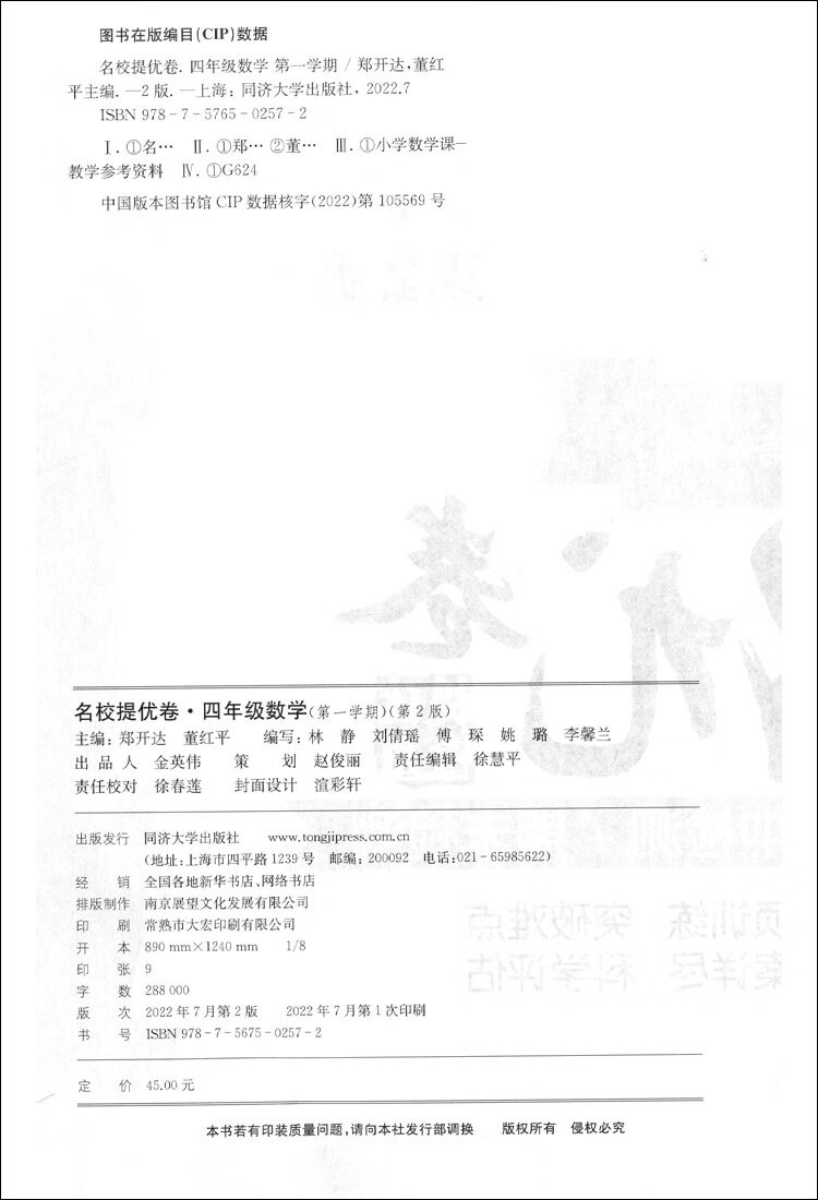 名校提优卷四年级下册语文数学英语第2版 小学4年级上下册含答案名校分层提优专项训练突破难点课外复习辅导试题测试训练