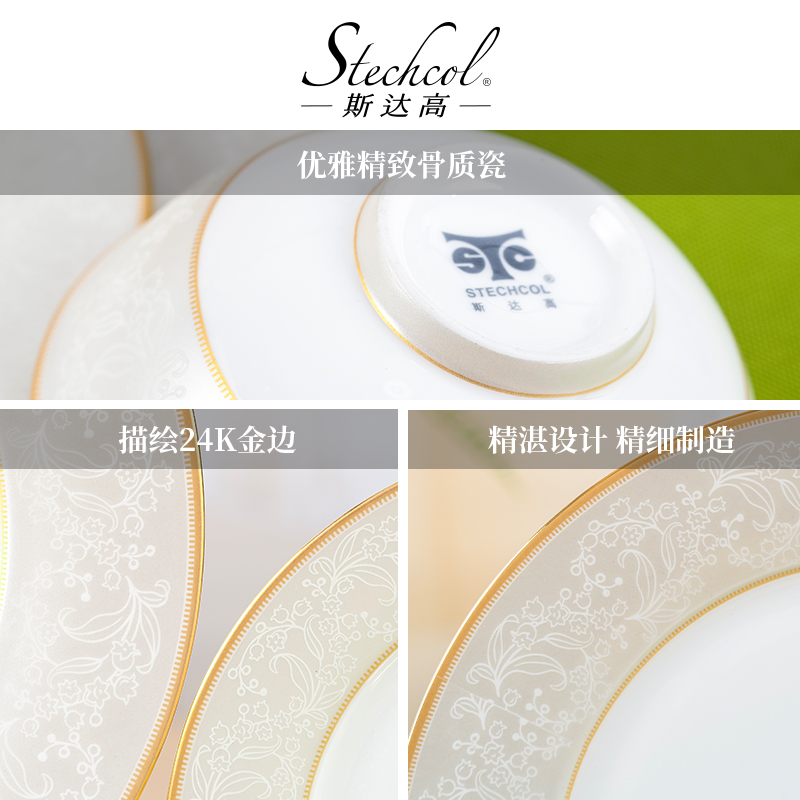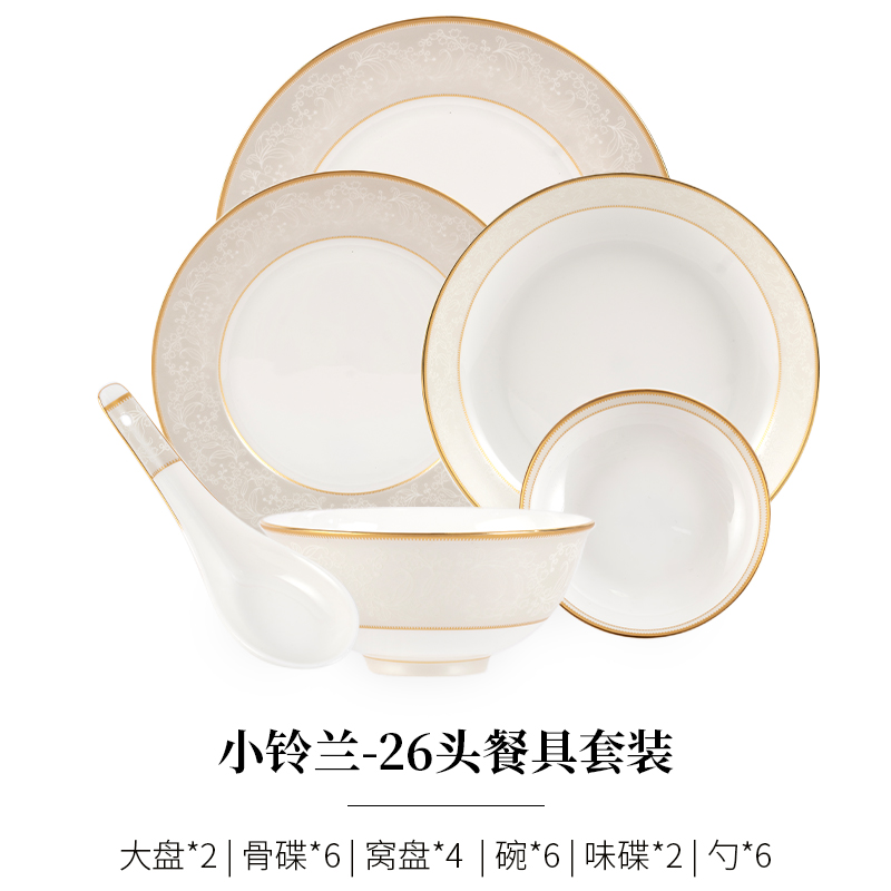 斯达高Stechcol 6人份 小铃兰26头骨瓷家用餐具碗碟套装