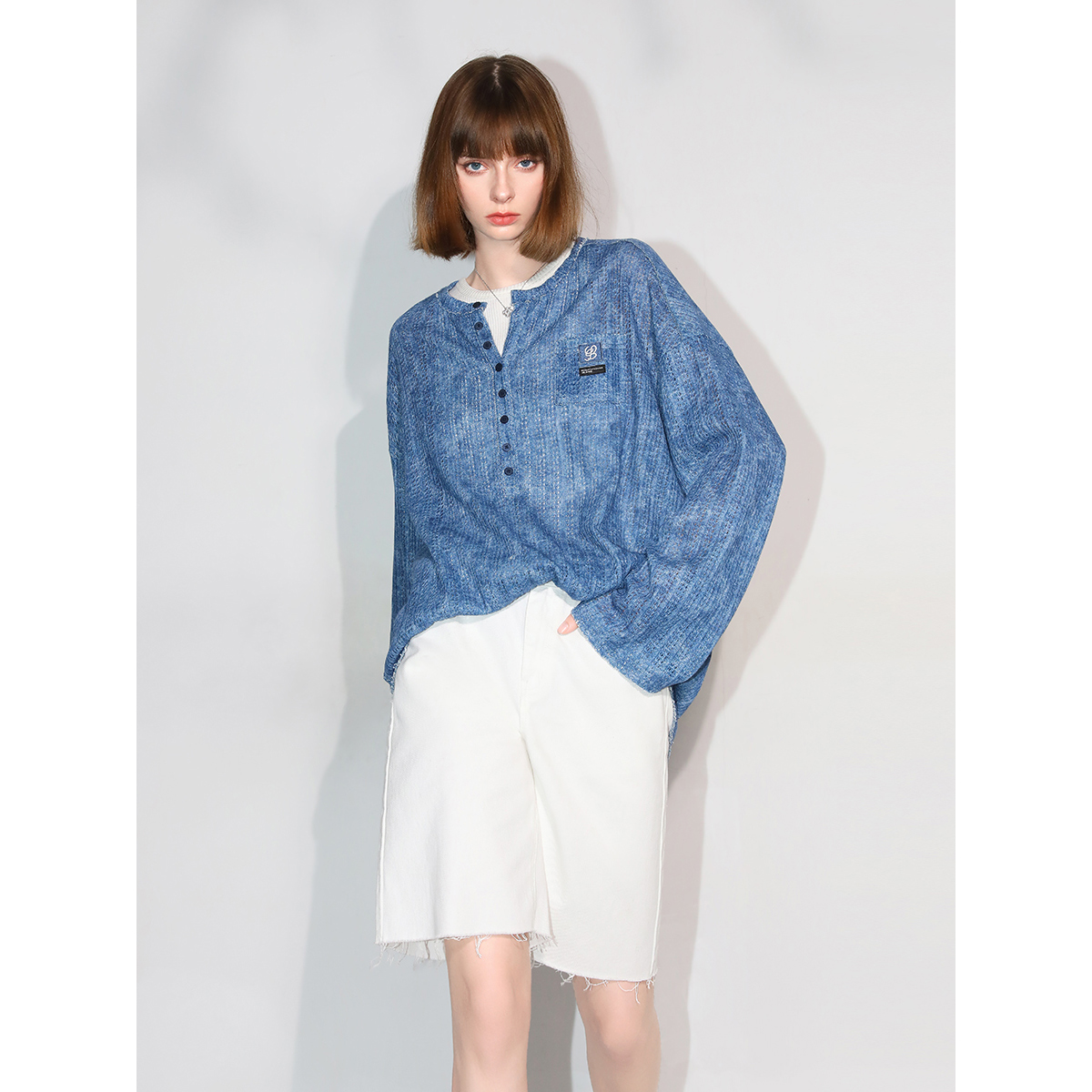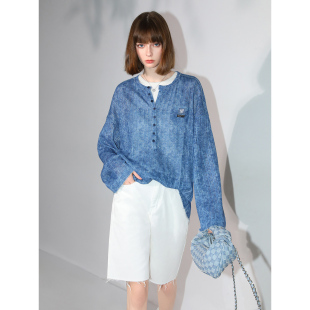 2025新款 子女装 秋季 饰毛边宽松蓝色阔腿裤 506743 吊坠装 三福牛仔裤