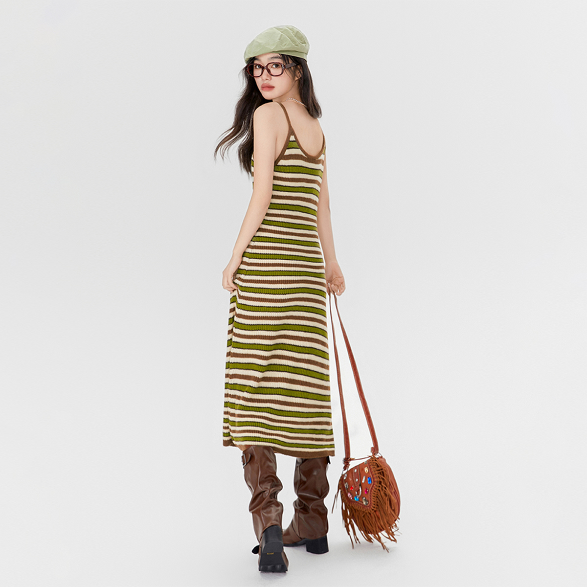 新款 25秋季 女毛衣背心裙春 外套两件套装 阔色学院风针织连衣裙开衫