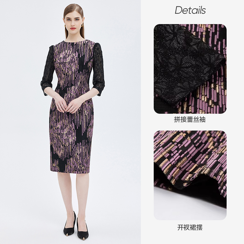 秋冬紫金肌理感连衣裙子晚宴品质洋气礼裙时尚 专柜正品 马天奴女装