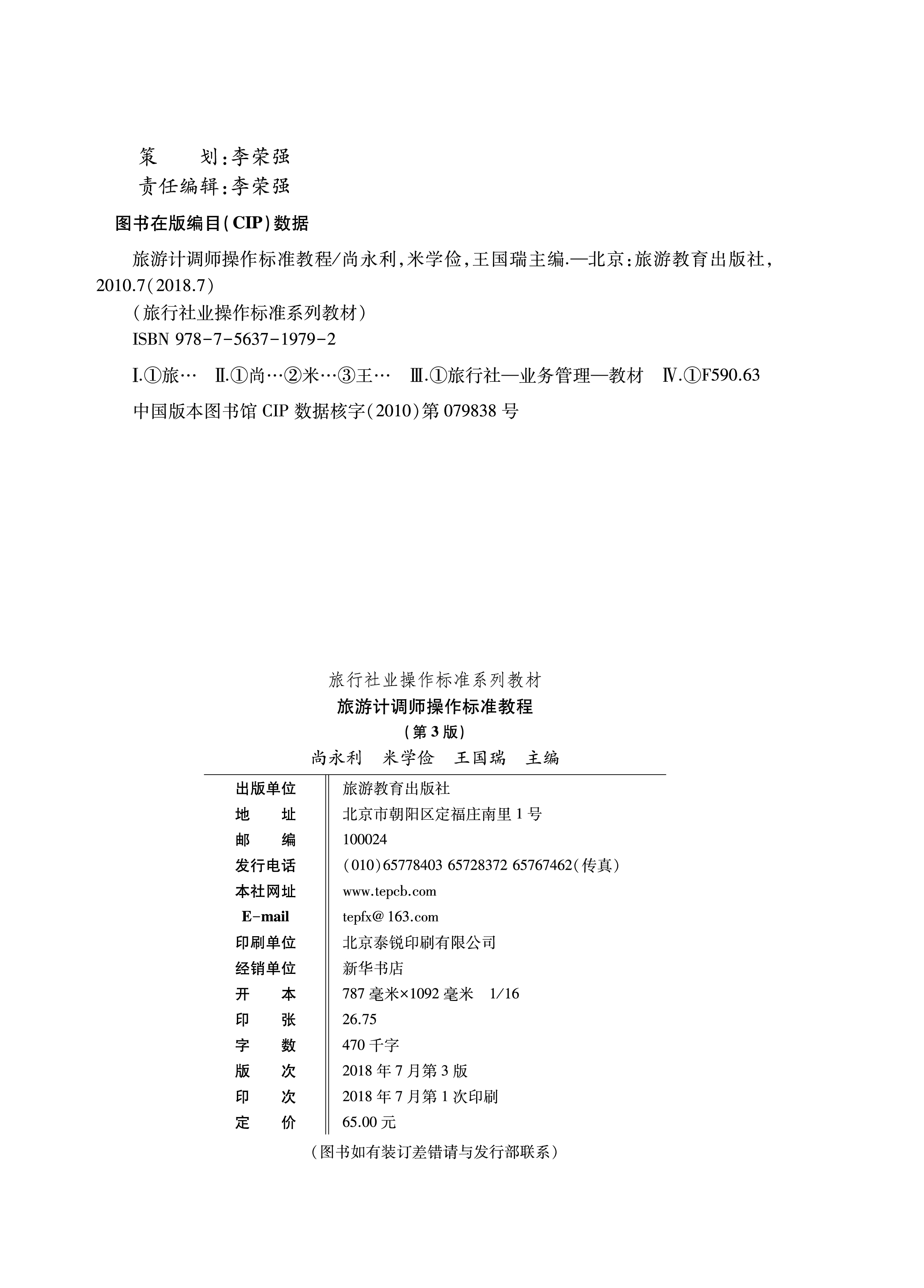 旅游计调师操作标准教程第3版 9787563719792旅行社岗位培训旅行社业标注操作系列教材内容专业全面直面大众 2018年7月出版