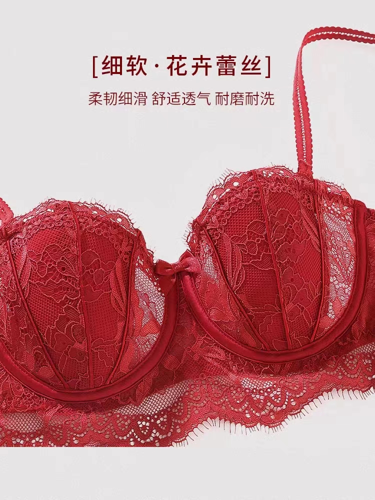 情侣一对女生男士 薄款 蕾丝文胸新婚 新娘新郎夏季 红色结婚内衣套装