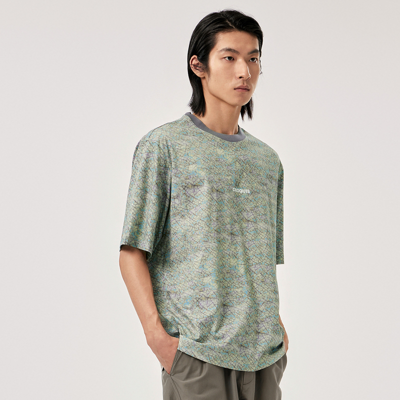 休闲舒适潮 T恤潮印花棉质五分袖 速写outlets奥莱男装 早春折扣新款