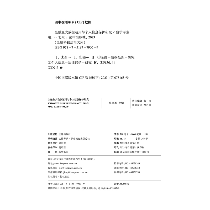 2023新书 法律出版 金融业大数据运用与个人信息保护研究 金融科技法治文库 社9787519779009 盛学军 正版
