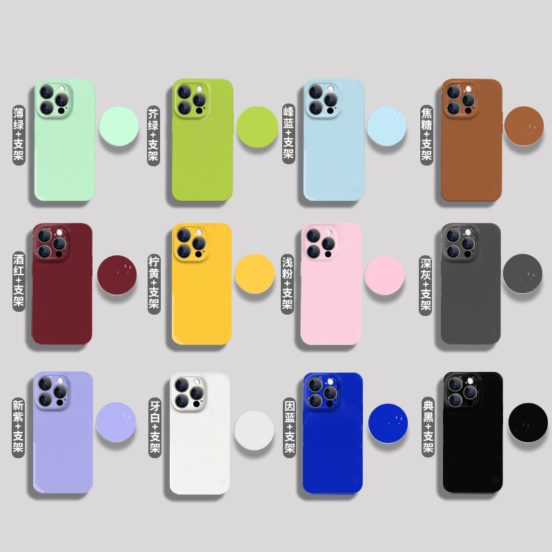 适用于苹果14pro手机壳纯色气囊支架ip13 情侣11Promax小众ins 12全包镜头14plus硬硅胶防摔菲林mini简约个性